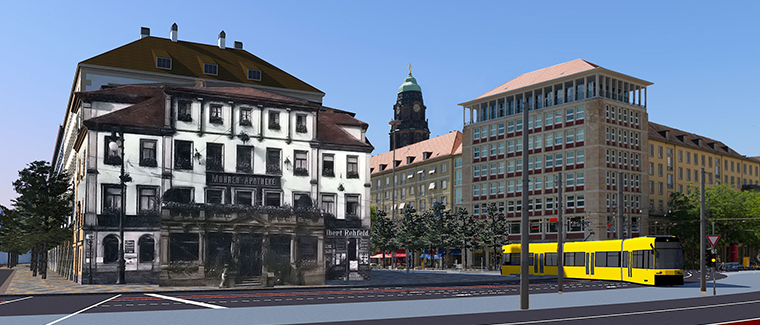 So könnte eine überarbeitete Lingnerstadt mit dem Palais Oppenheim aussehen. Visualisierung: Jens Schuppe, Andreas Hummel Arte4D, Dresen.