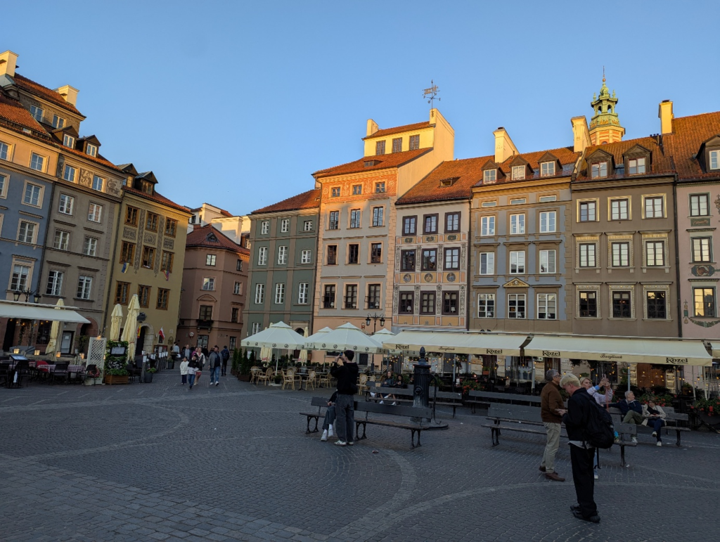 Da wir direkt in der Altstadt Quartier genommen hatten, konnten wir schon gleich nach unserer Ankunft einen Blick auf den in die Abendsonne getauchten, rekonstruierten Rynek Starego Miasta (Marktplatz in der Altstadt) werfen.